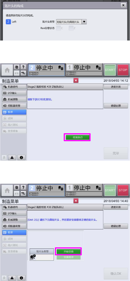 6 校准完成后,会变为贴片头更换的画面,请按“开始交换(更换)”。
