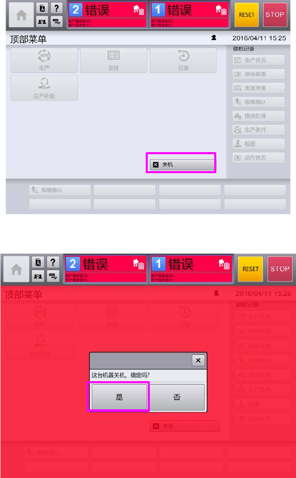 第 1 章 作 业顺 序书 1-7. MC3 Main 固件 的升级 11. MC3 Main 的固件更新结束 更新结束时显示 以下的 [Finished] 画面。 12. 关闭装置的报警画面。 39