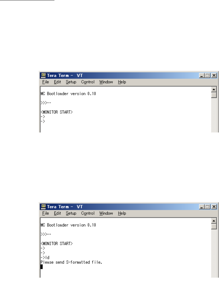 1) 按下更新用 PC 的“Enter 键”,在 TeraTerm 显示器画面显示出”->”。