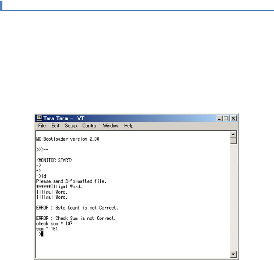 5) 在 TeraTerm 的显示器画面显示“Verify Completed.”后,向闪存的写入结束。