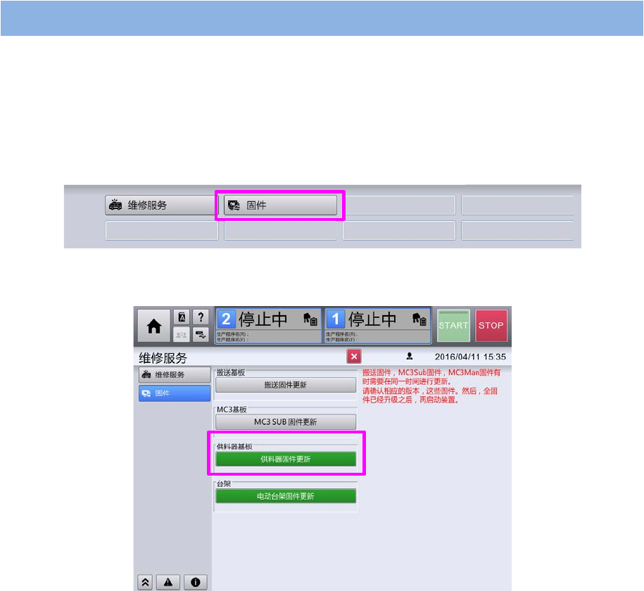 供料器固件升级用文件的最新版,保管在本机内,所以在升级最新版时,基本上请使