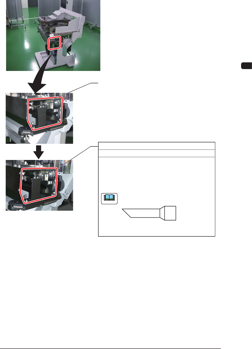 7OM-1603 Chapter 4 : 3. Maintenance Spots 4-23 3.2.5.1 Cutter Unit Remove the screw on the other side. (12 locations) Cutter Box Inside Every W eek Cleaning (1) Detach the bank feeder change cart. (2) (3) Use a vacuum cl…