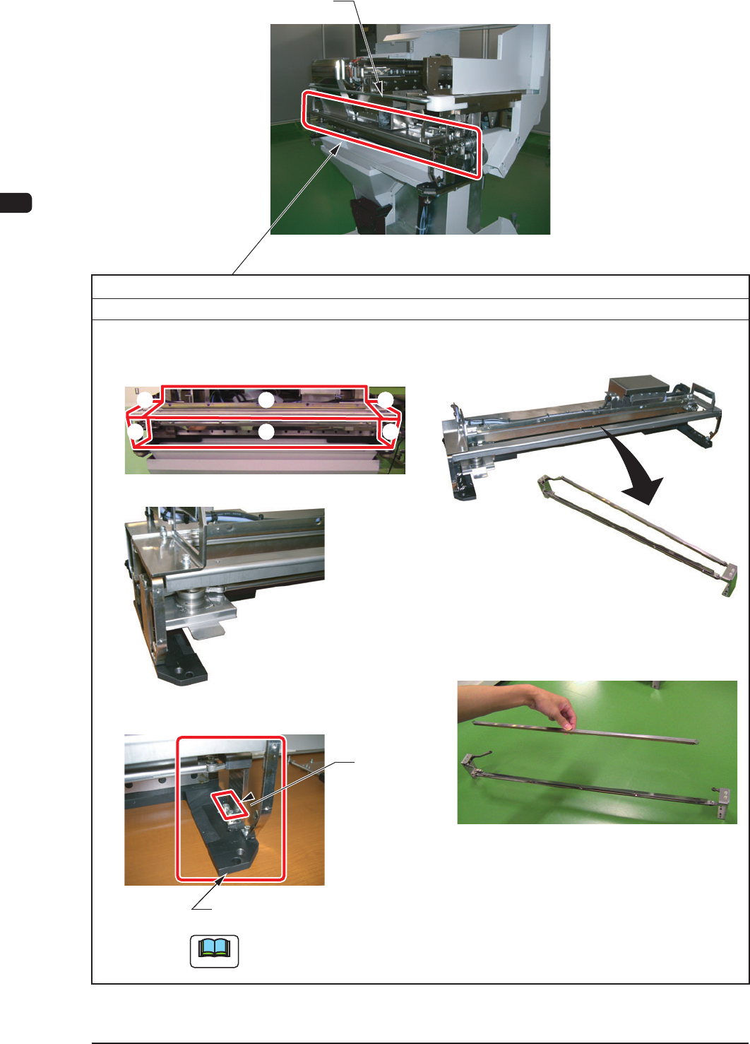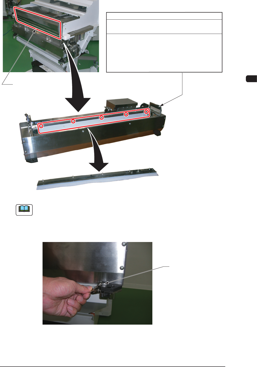 7OM-1603 4-28 Chapter 4 : 3. Maintenance Spots (3) Attach the cutter blade cover. (1) Remove the front safety bar and take out the cutter from the cart. ② ⑥ ① ④ ⑤ ③ ③ ② ⑥ ⑤ Front Safety Bar Urethane Clamp (2) Remove the …