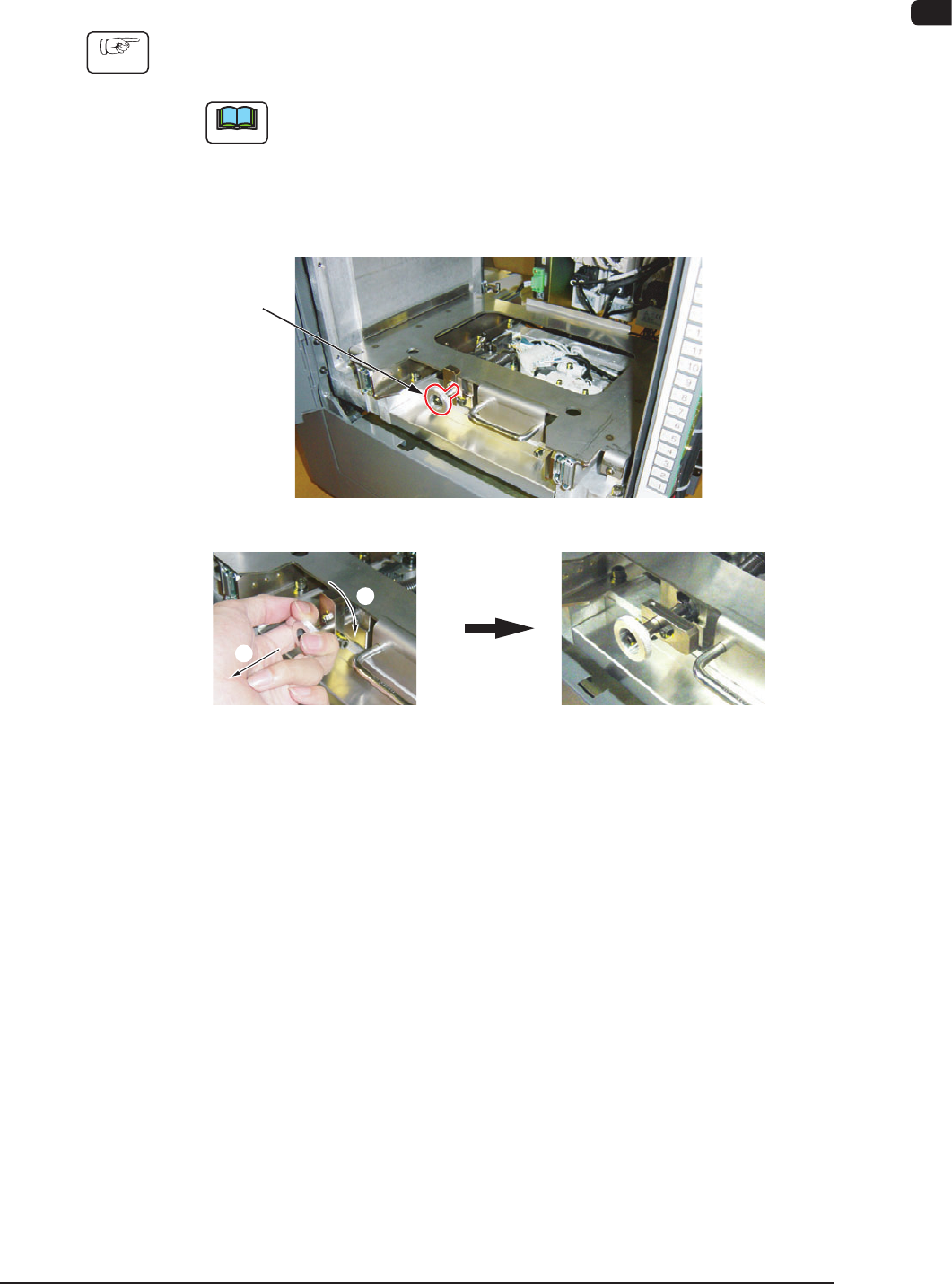 7OM-1603 1-18 Chapter 1 : 3. Name of Each Section and Handling 3.4.1 Attachment Procedure of Pallets NOTICE Be sure to insert a pallet horizontally into the magazine. Otherwise, the traverse cannot pull out the pallet, c…