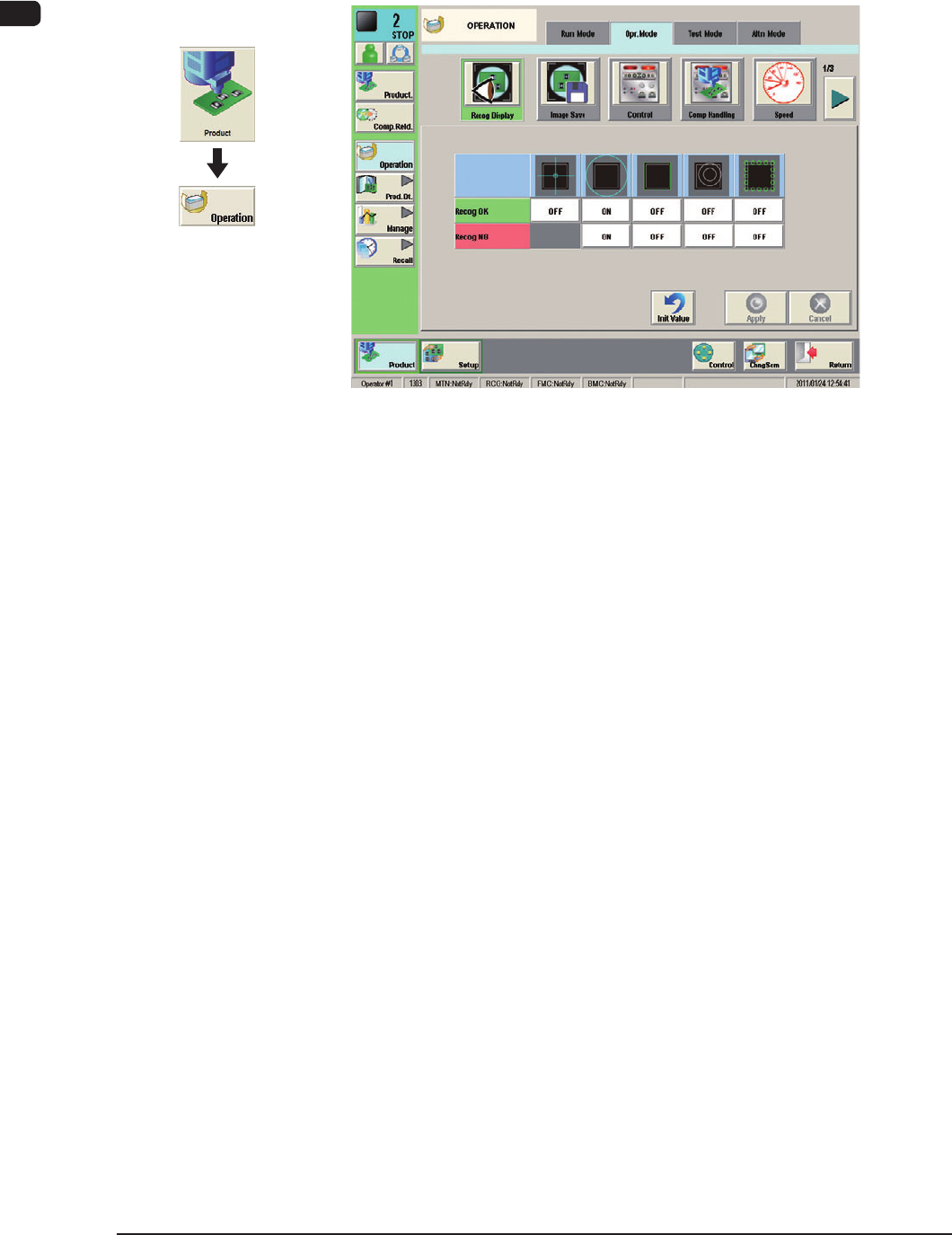 7OM-1603 Chapter 2 : 2. Menus for Automatic Operation 2-9 2.3.1 "Opr .Mode" T ab Sheet When the [Control] button is pressed in the "Opr.Mode" tab sheet the following window appears. [1] "Opr.Mode…