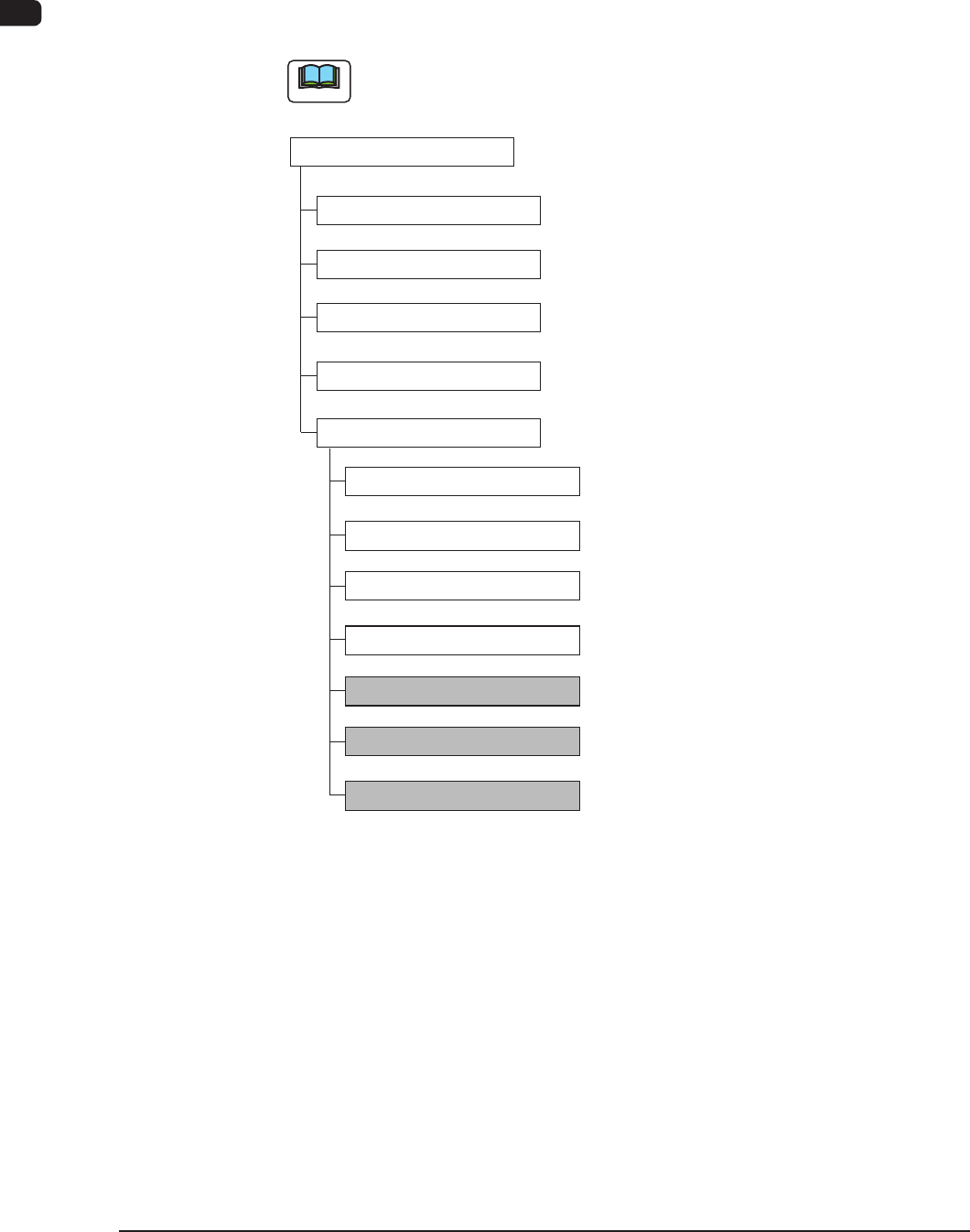 The following shows the hierarchical structure of the menus (including the