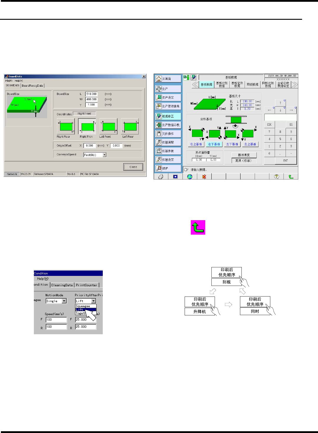 把用编辑器编制、编辑的生产数据下载到本机上,并用此数据进行印刷。用编辑器输入基板识别等