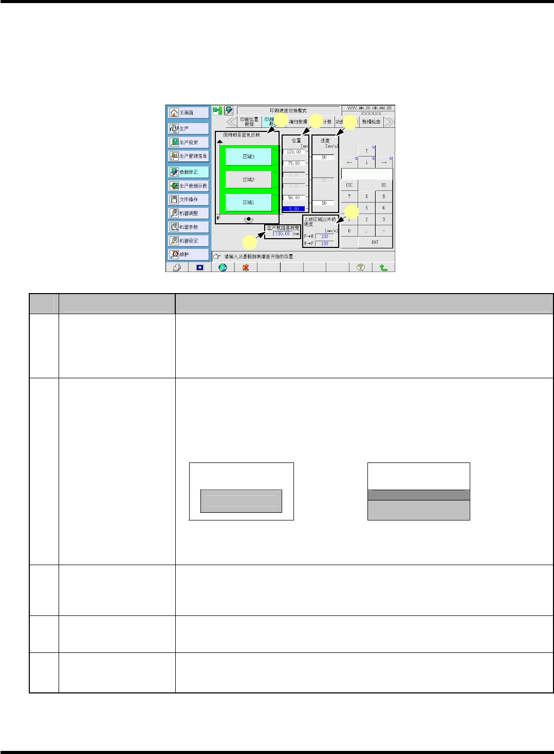 SP18P-L 程序手册 1.5 生产数据的编制 Page 1-32 2. 印刷范围 输入刮板的印刷动作范围。 如果不输入任何数据,则从基板的一 端开始印刷至另一端。当印 刷领域仅限于基板上的一部分时 , 可通过输入并调整此值来提高节拍时 间。 3. 升降机 A) 间隙 进行网板与基板间的间隙调整。输入 值为 “0” 时,间隙为 “0” 。 为了使网板和基板更好地相贴紧,通 常请输入 “ − 0.3 ~ − 0.1” 。 B) 下降速度…