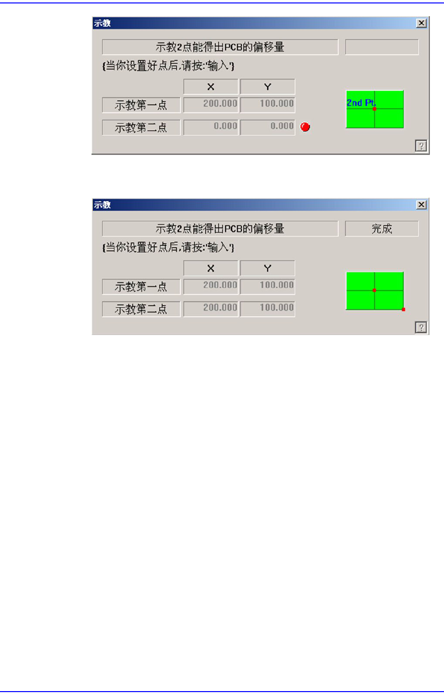 按下” 输入”键时,结束多片PCB 的偏移量示教。