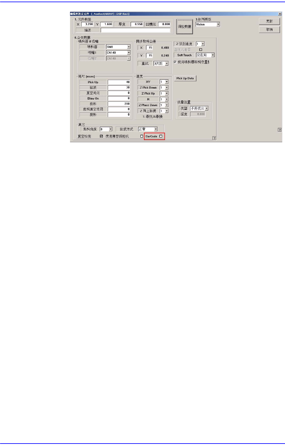 置画面圈选<BarCode>复选框显示供料器列表,该供料器供应所登记的