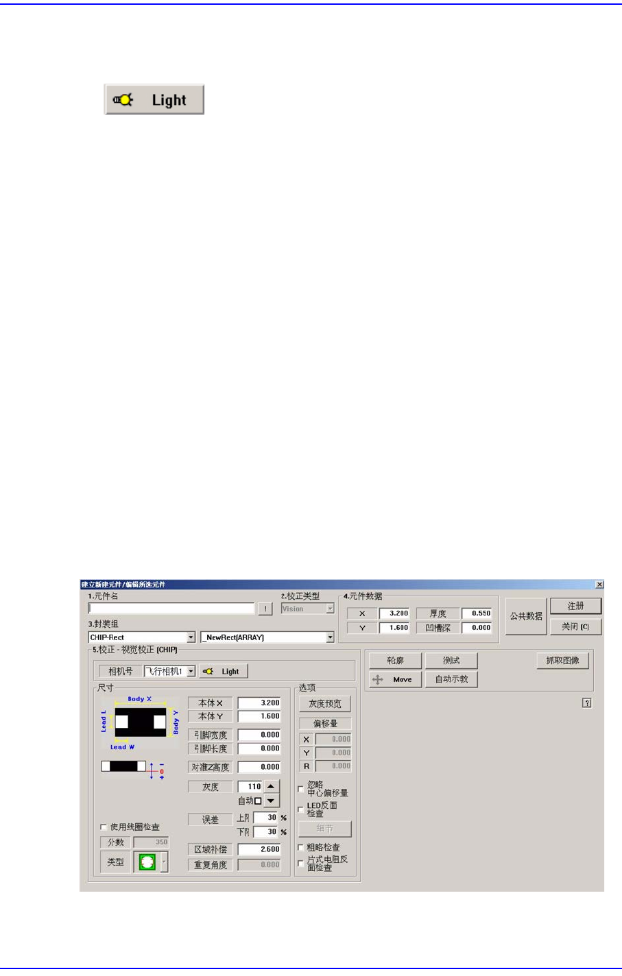 设定识别部品用摄象机的照明度。 详细事项请参照 “7.1.1
