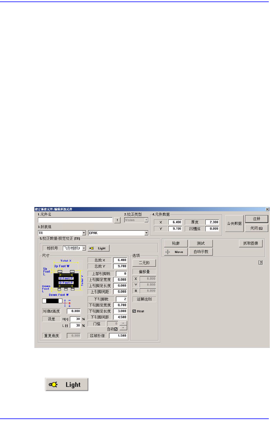 设定识别部品用摄象机的照明度。 详细事项请参照 “7.1.1