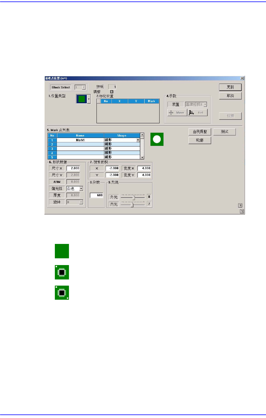 贴装点上有基准点标记时,设定基准点标记的数据。单击此按钮时显示如下的