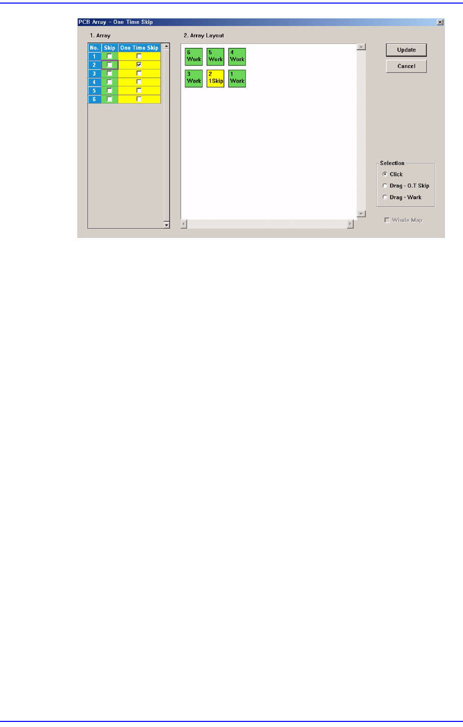 在‘PCB Array’对话框中已设定要适用‘One-Time-Skip’功能的小型