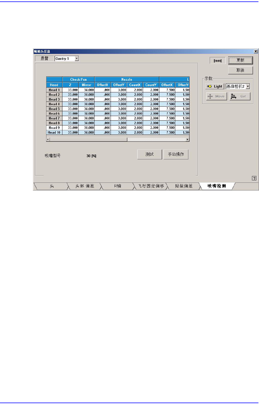吸嘴已被安装到贴片头上,如果超过该值,则判断贴片头上班没有安装吸嘴。如