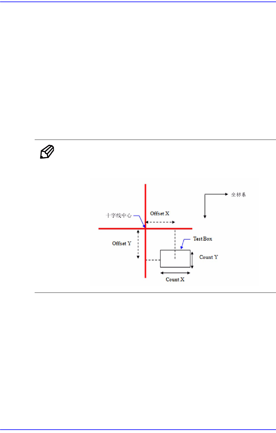 Box(即Test Box)中心位置的距离时,X轴方向的距离称为Offset X,Y轴方