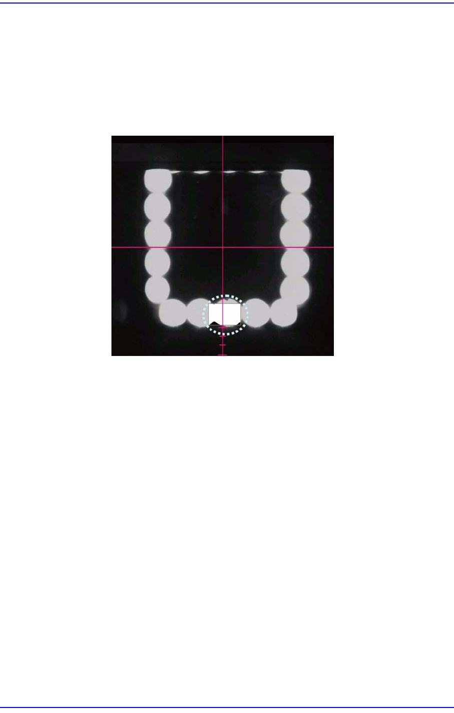 12-18 Samsung Component Place r SM481 Administrator's Guide 2) 单击 < 测试 > 按钮时, Te s t B o x 的位置是右下角 LED 的明亮部 位, 应设置 为进行 T est 时的 Pixel Count Percent 超过 90% 。 <FOV 25mm Fly Camera 时 > <FOV 16mm Fly Came…