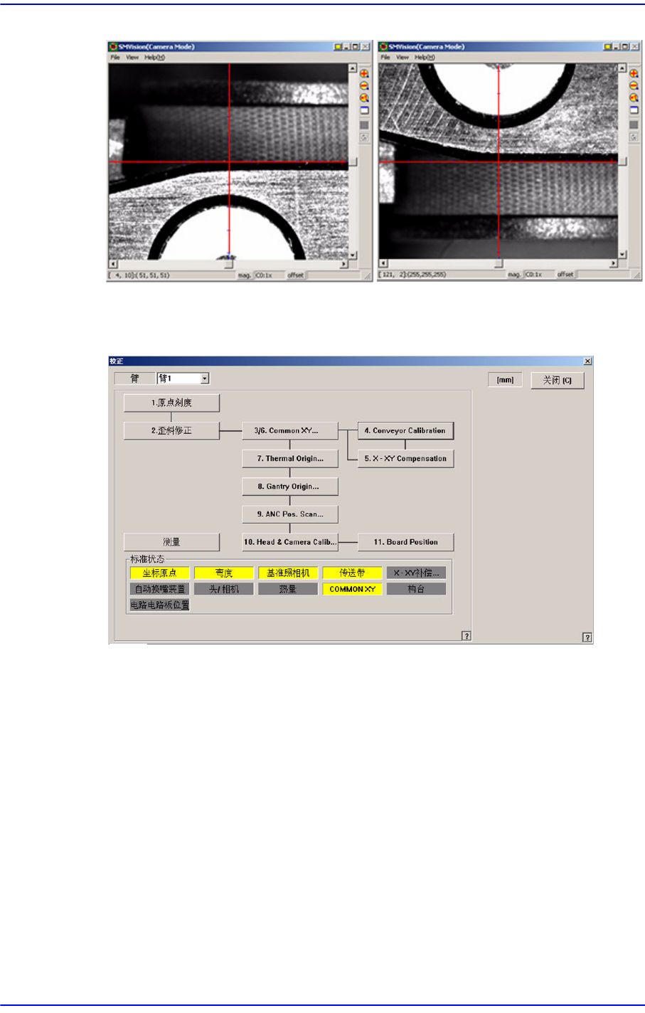 12-35 Machine Calibration 8. 如一致, 点击示教盒的 <Get> 按扭。 9. 然后, 用鼠标选择 参考点 #2 相应的 < 边偏移 > 编辑框, 点击 < 移动相机 > 按扭。 10. 用 参考点 #1 的示教方法, 同样地对 参考点 #2 执行示教。 11 . 对所选 Station 的 Fiducial Mark 完成示 教, 则用同样的方法对其 他 Fiducial…