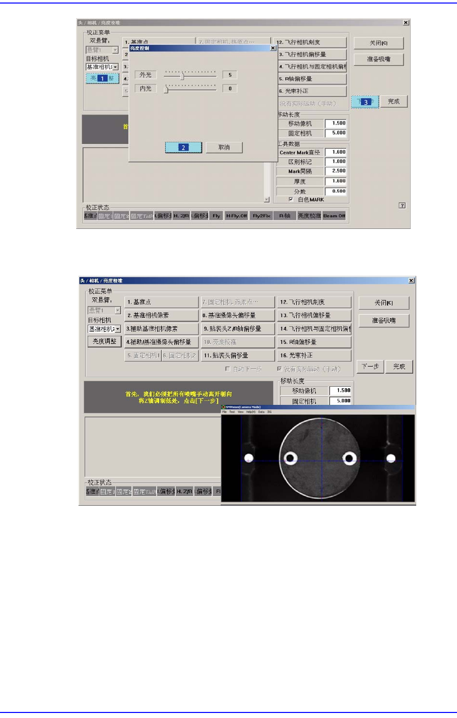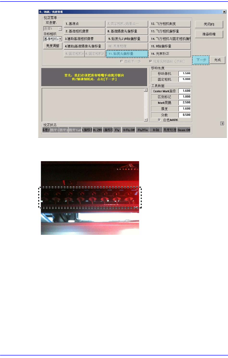校正时,虽然对当前被选的Head自动更换吸嘴,但要点击<下个>按钮才能执行