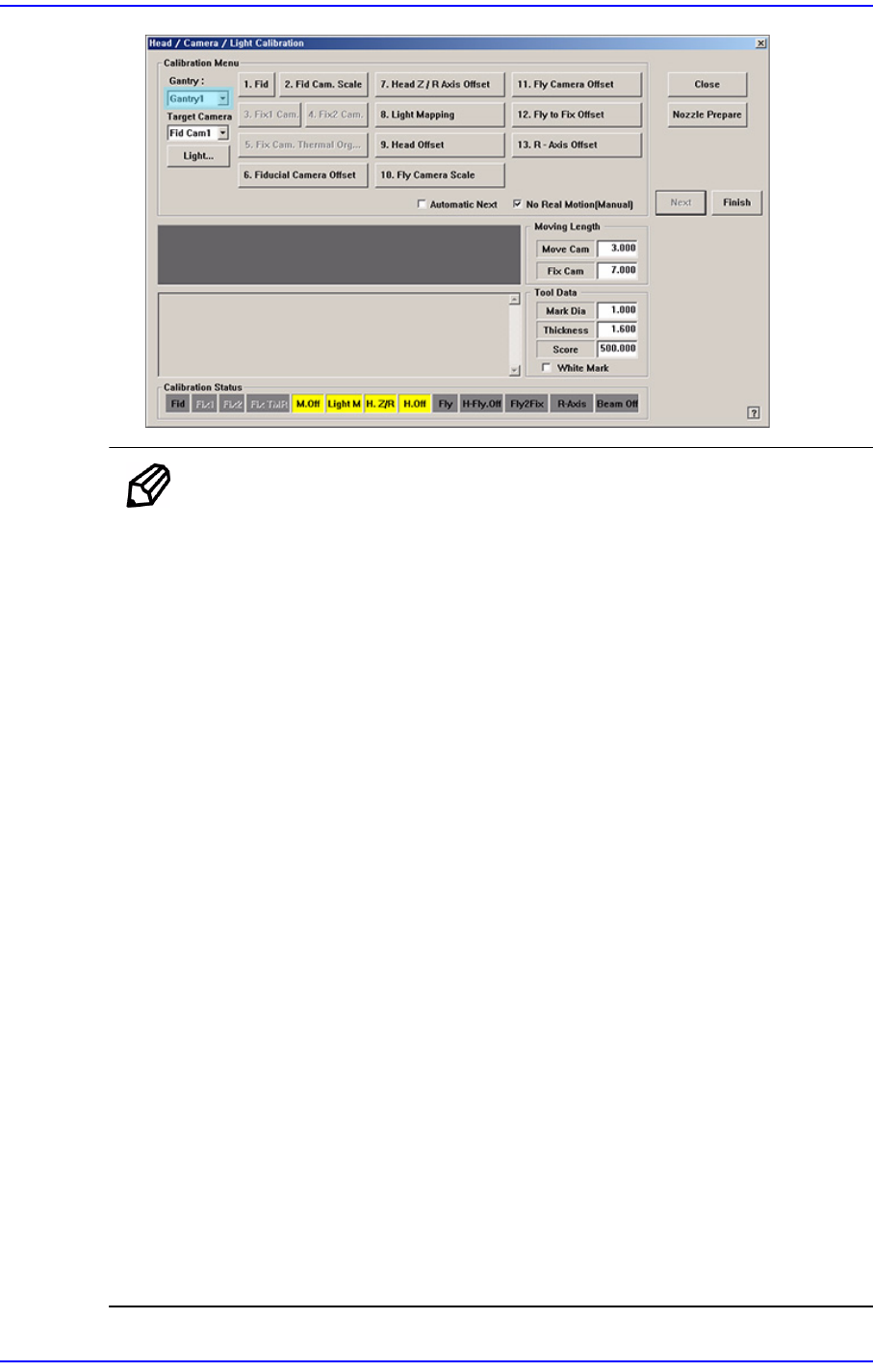 12-58 Samsung Component Place r SM481 Administrator's Guide 11 . < G a n t r y > 组合框中选择 Gantry2 后, 与 Gantry1 相同的方 式执行校正。 结果值可在 Head Offset 对话 框中确认。