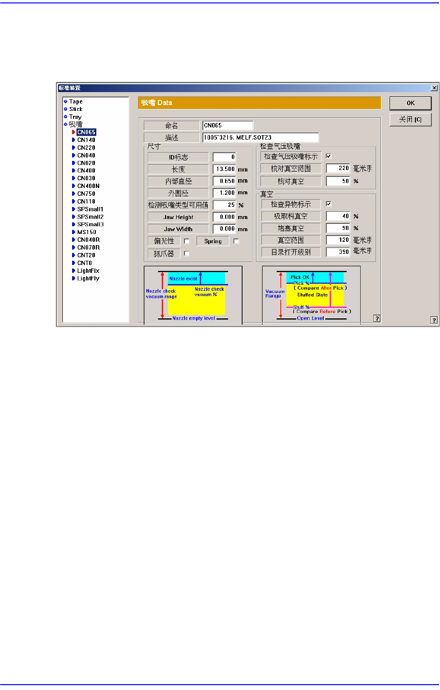 以下画面是Device List中选择 “吸嘴“时。 设定有关吸嘴的数据。