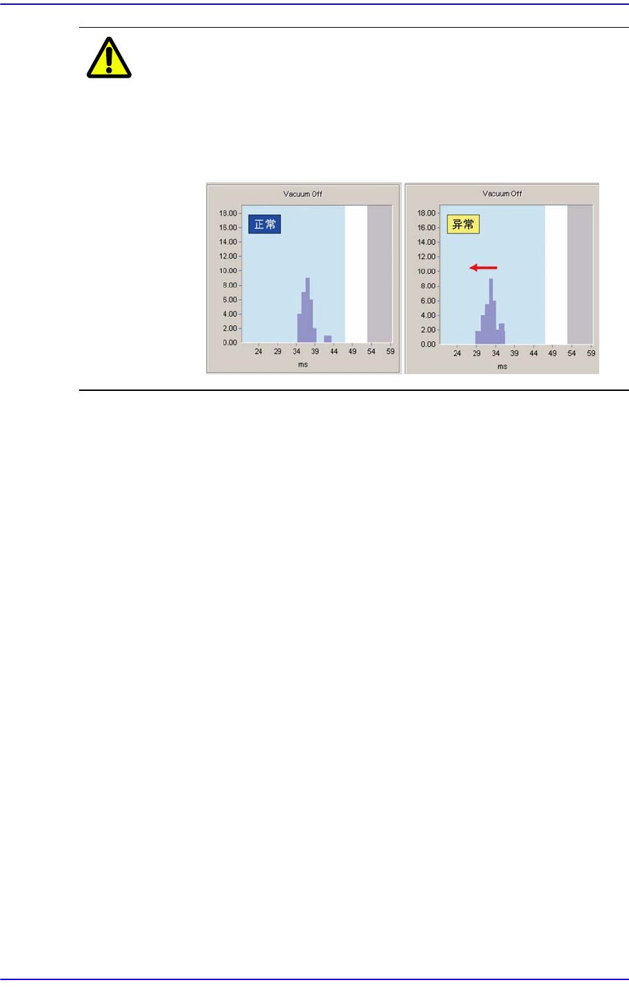 14-12 Samsung Component Place r SM481 Administrator's Guide 注 意 真空过滤器 (Vacuum Filter) 的清扫越 是不良, 越会提早出现破 坏 真空 (Vacuum Off) 的现象。 如下 图所示, 以平均值为基准 , 如果 结果值偏布于左侧就更换真 空过滤器。 否则, 电磁阀会受损 而最终影响到设备性能 ( 真空过滤器 : 更换周 期 6 个月 ) 。 …