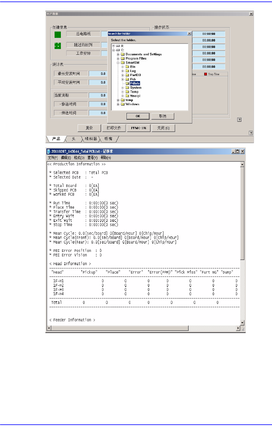 16-5 生产信息管理 16.1.2. Head 表示各磁头的作业信息, 显示跟贴装有关的全部统计信息 。 <Head> 标题框 表示总磁头数。 <Pickup> 列 表示吸附部件总数。 <Place> 列 表示贴装部件总数。 <Error> 列 吸附的部件利用 Vi s i o n 进行部件识别后, 部件 贴装失败次数。 <Error(PPM)> 列 利用…