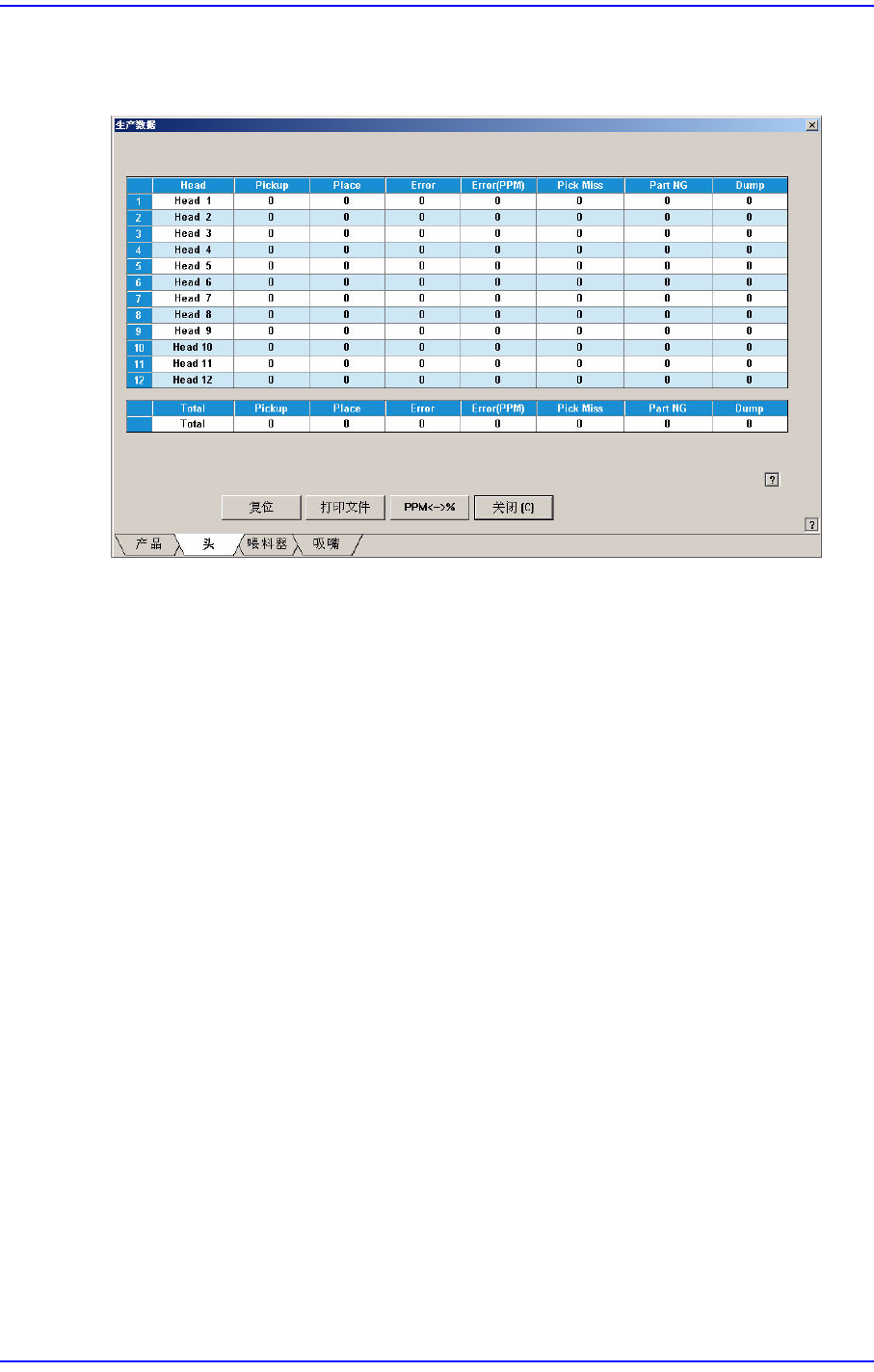 表示各磁头的作业信息,显示跟贴装有关的全部统计信息。