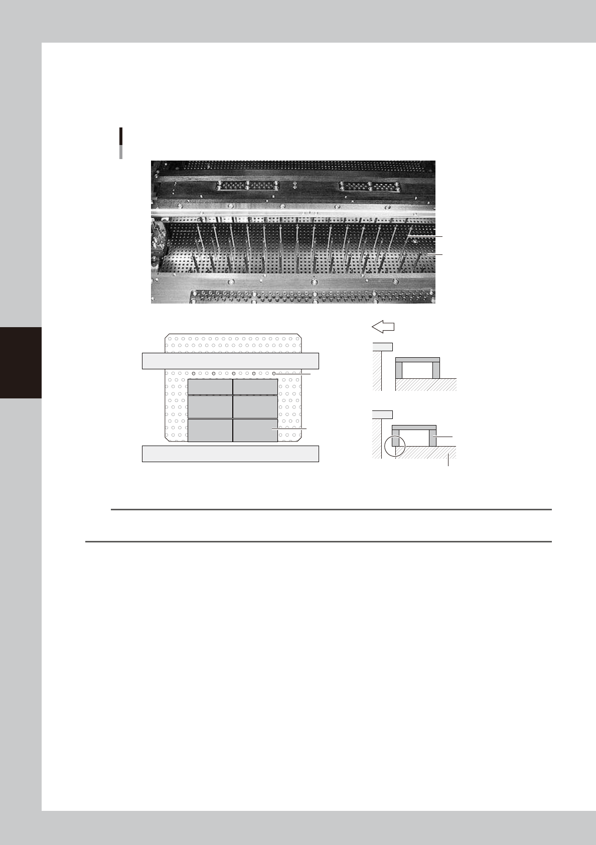Press the emergency stop button and open the upper door. Arrange the matrix pins on the push-up