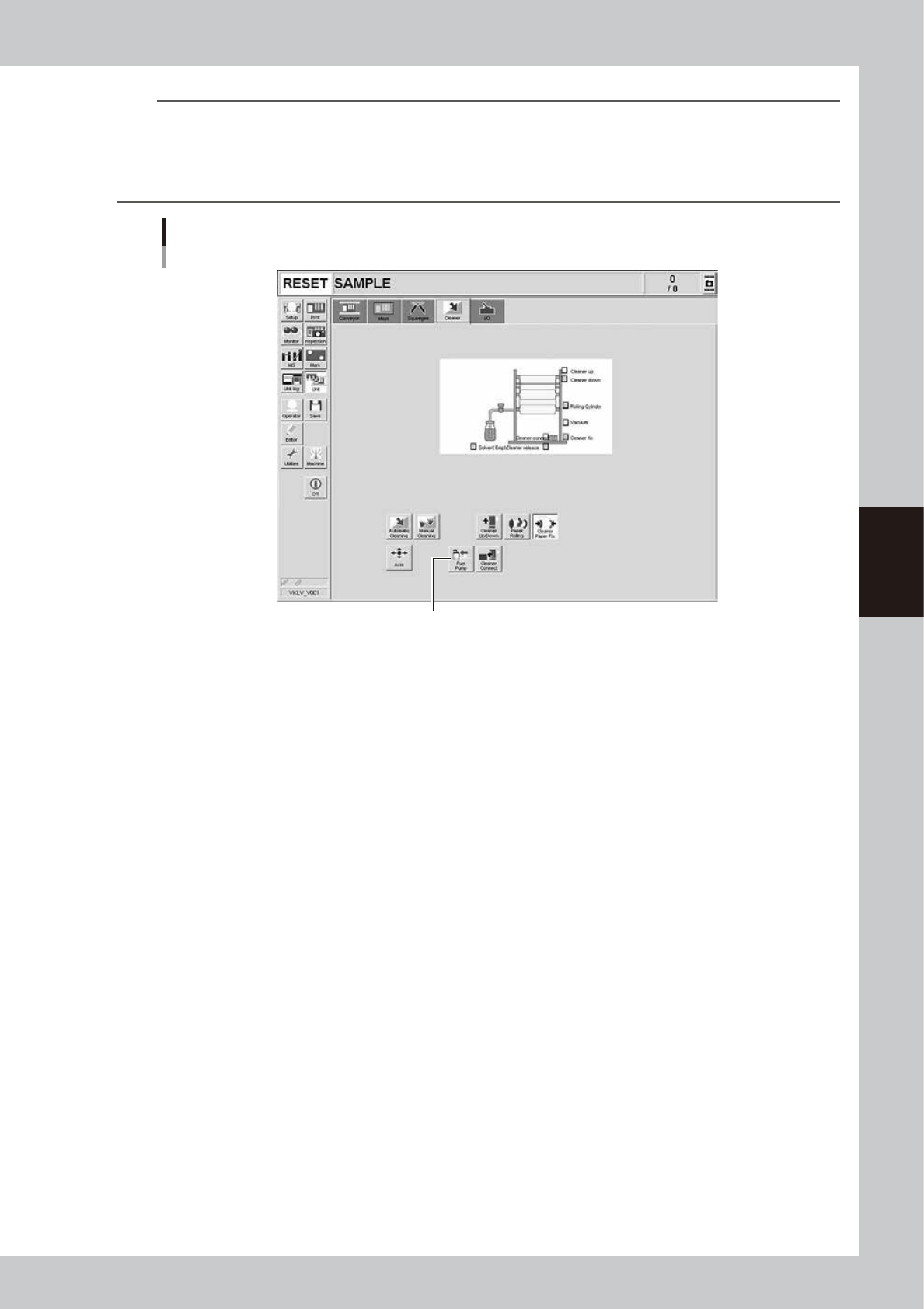 2. Press the [Fuel Pump] button to discharge the solvent. When the solvent oozes from the gauze roll, this work is