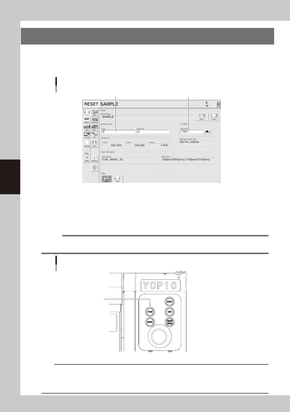 Set the total number of boards to be produced and the operation speed.