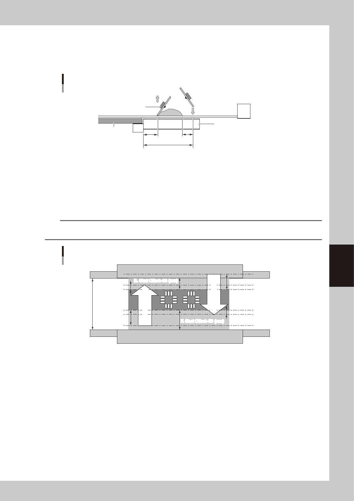 As shown in the drawing above, let's consider cases where you print in the dark shaded area 50 mm from the closer edge