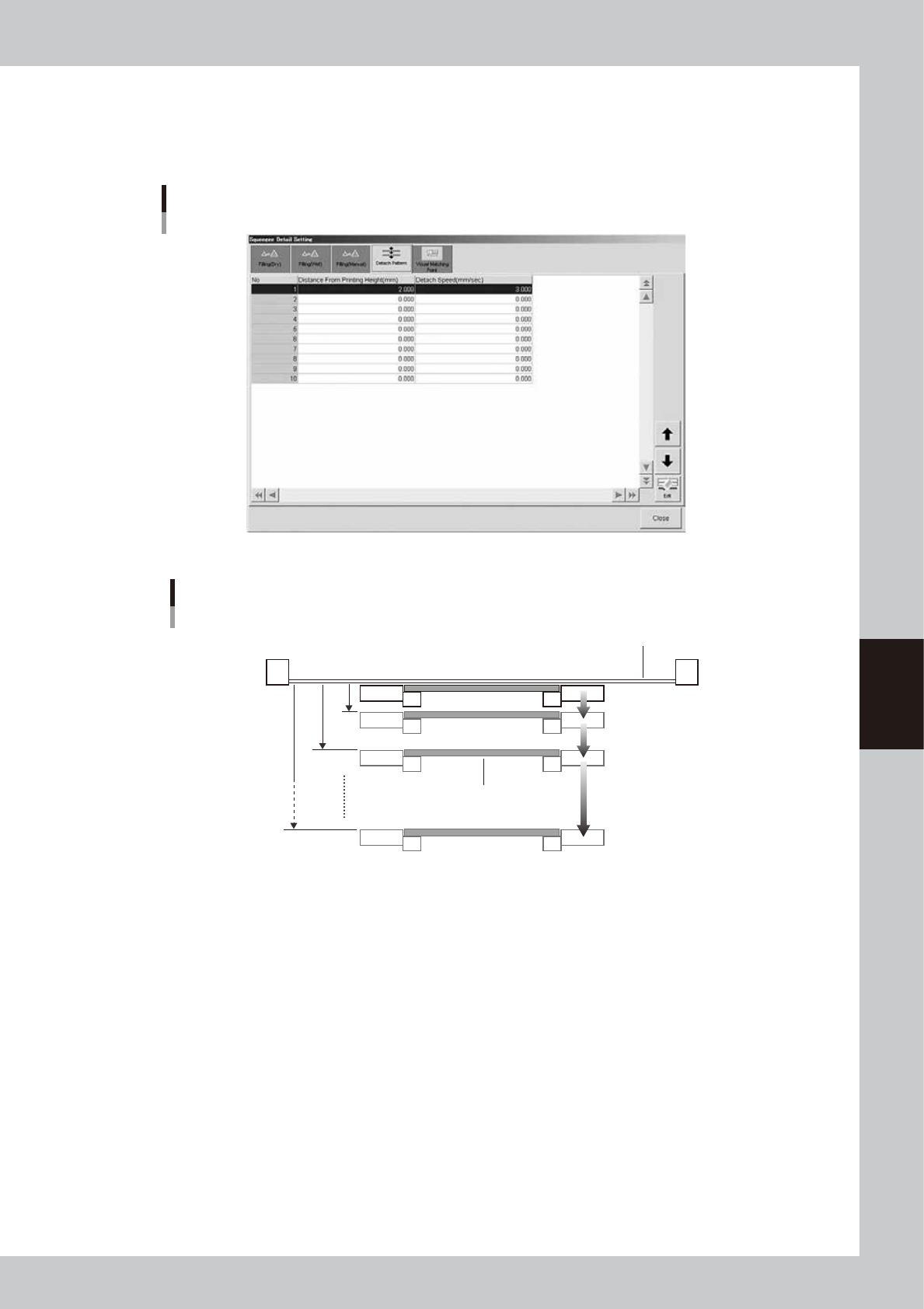 separation timing by specifying the distances (mm) and speeds (mm/sec).