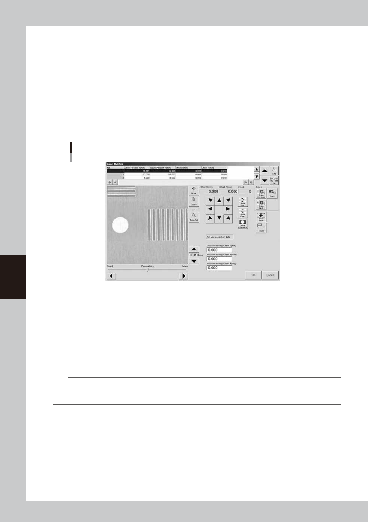 If a position offset (deviation) is found by graphic or visual alignment, you can adjust it in the "Visual