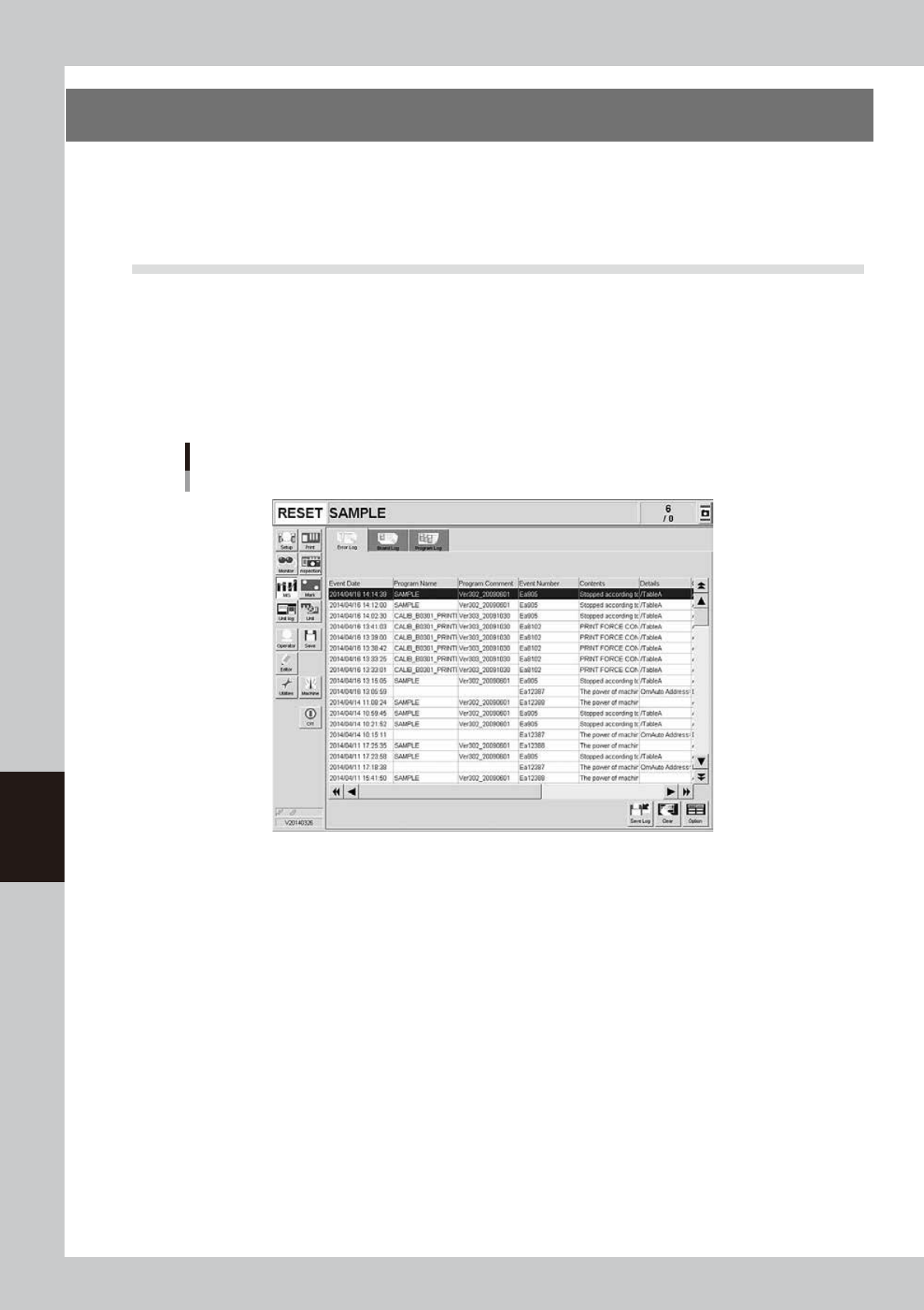 6-19 6 Managing the data n Items displayed on the "MIS" screen [Error Log], [Board Log] and [Program Log] tabs Items to be display ed on these tabs can be viewed by pressing the [Option] button on the lower rig…