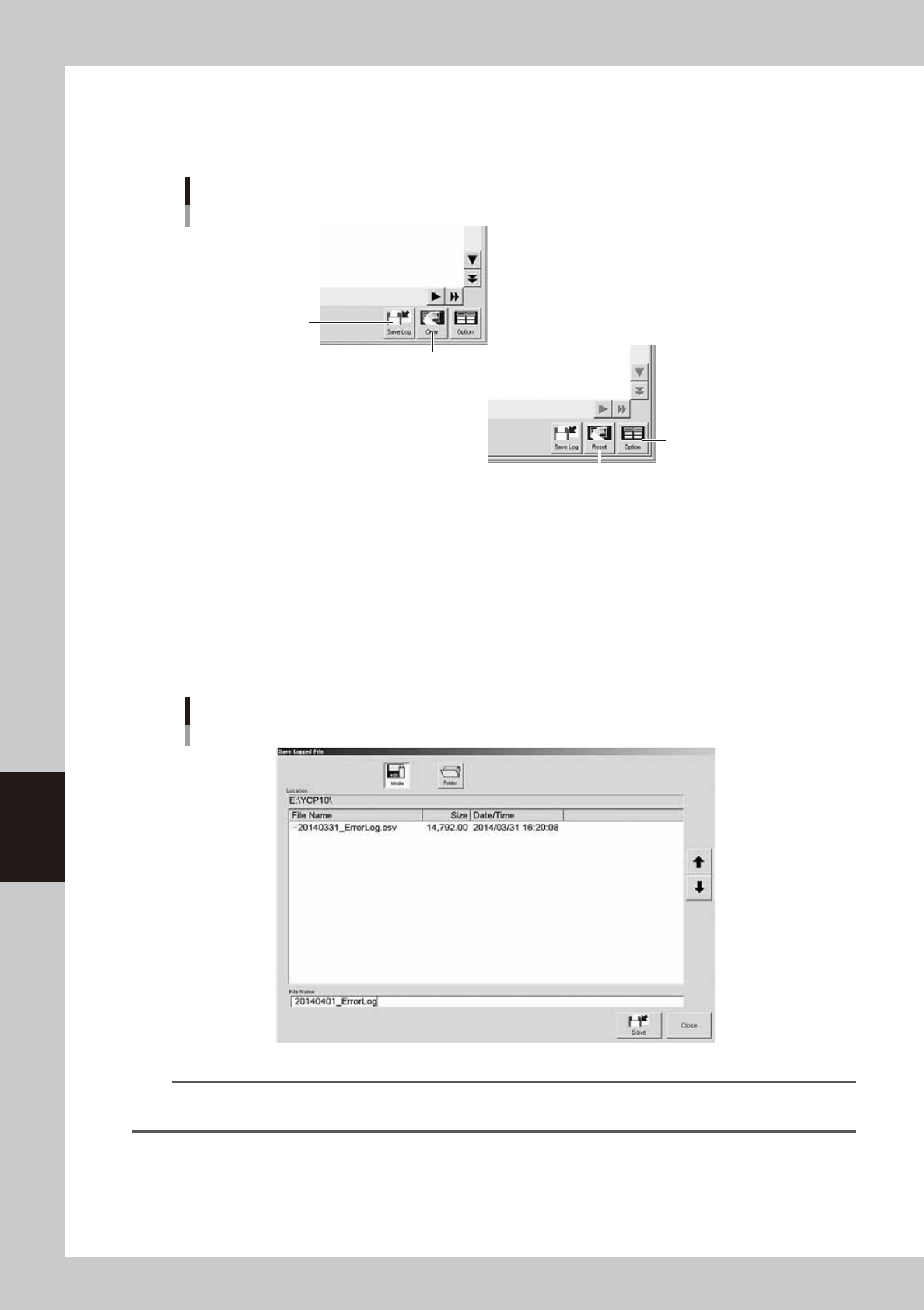 1. Press the [Save Log] button to open the "Save Logged File" screen.