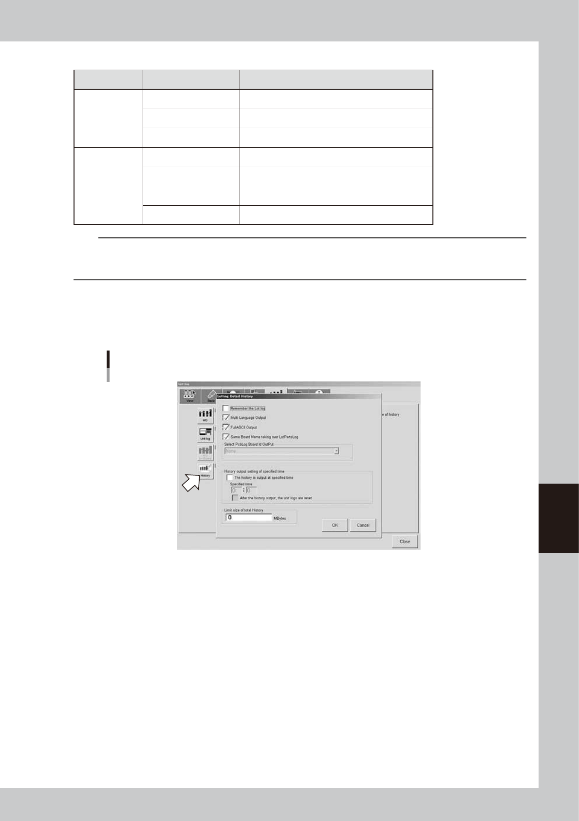 • "History output setting of specified time" check box