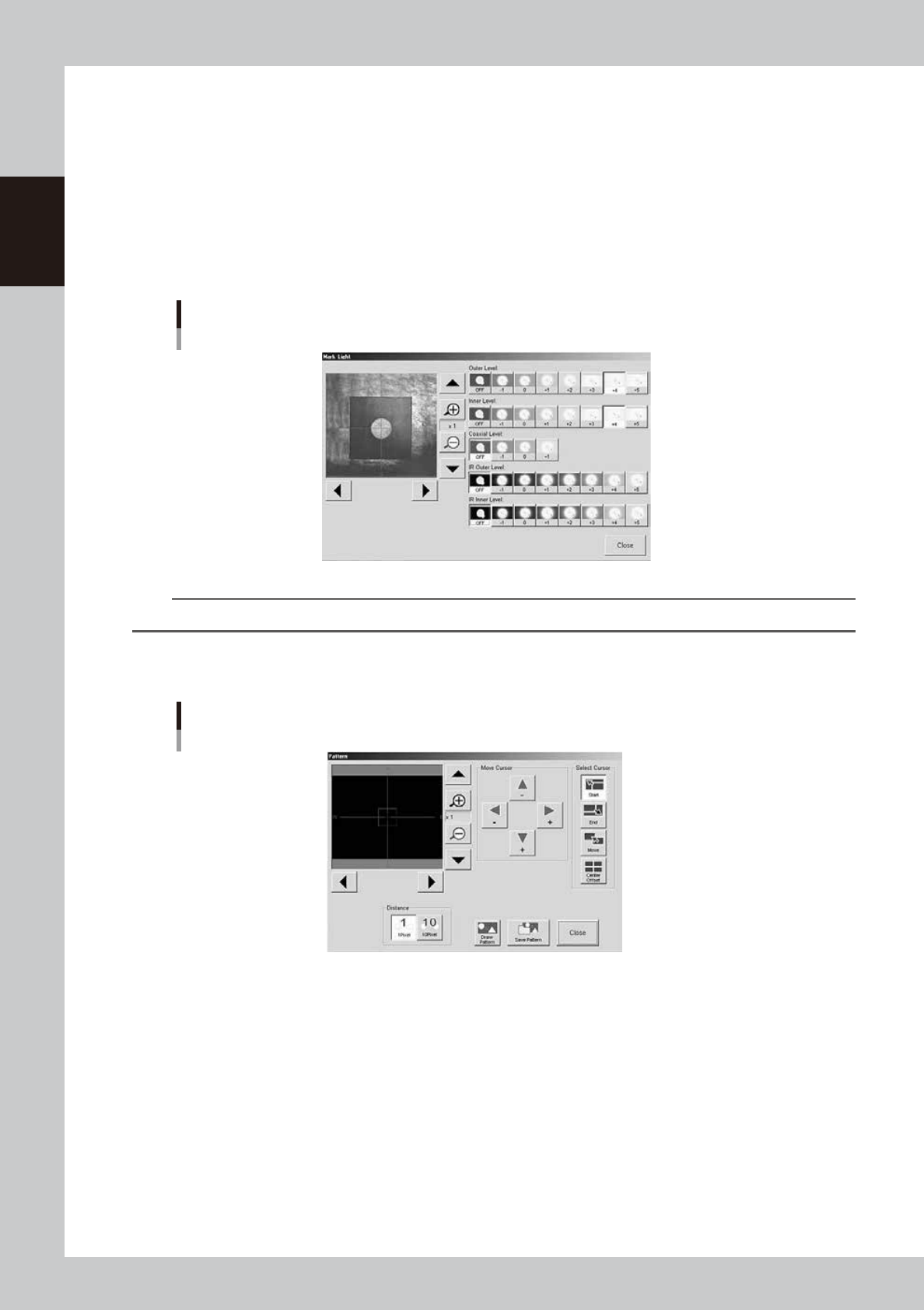 7-13 7 Other functions 0 Decide on the pattern size. By using the cursor selection buttons and arrow buttons, adjust the window size and position to enclose the entire pattern. The function of each button is as follows. …