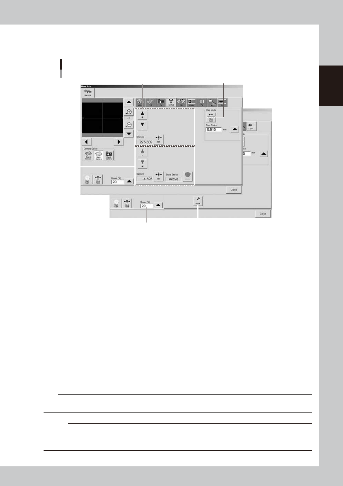 Specify the step stroke (inching stroke) with the arrow button or enter it directly in the "Step Stroke" box.