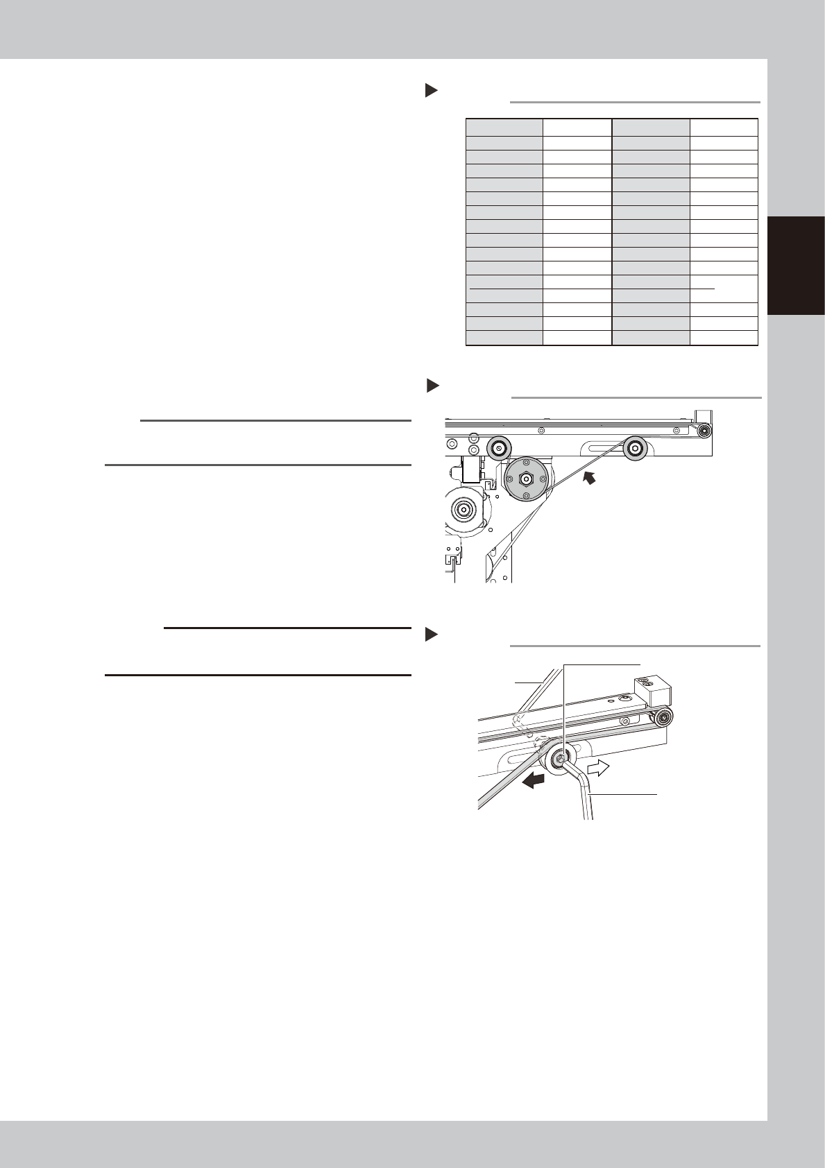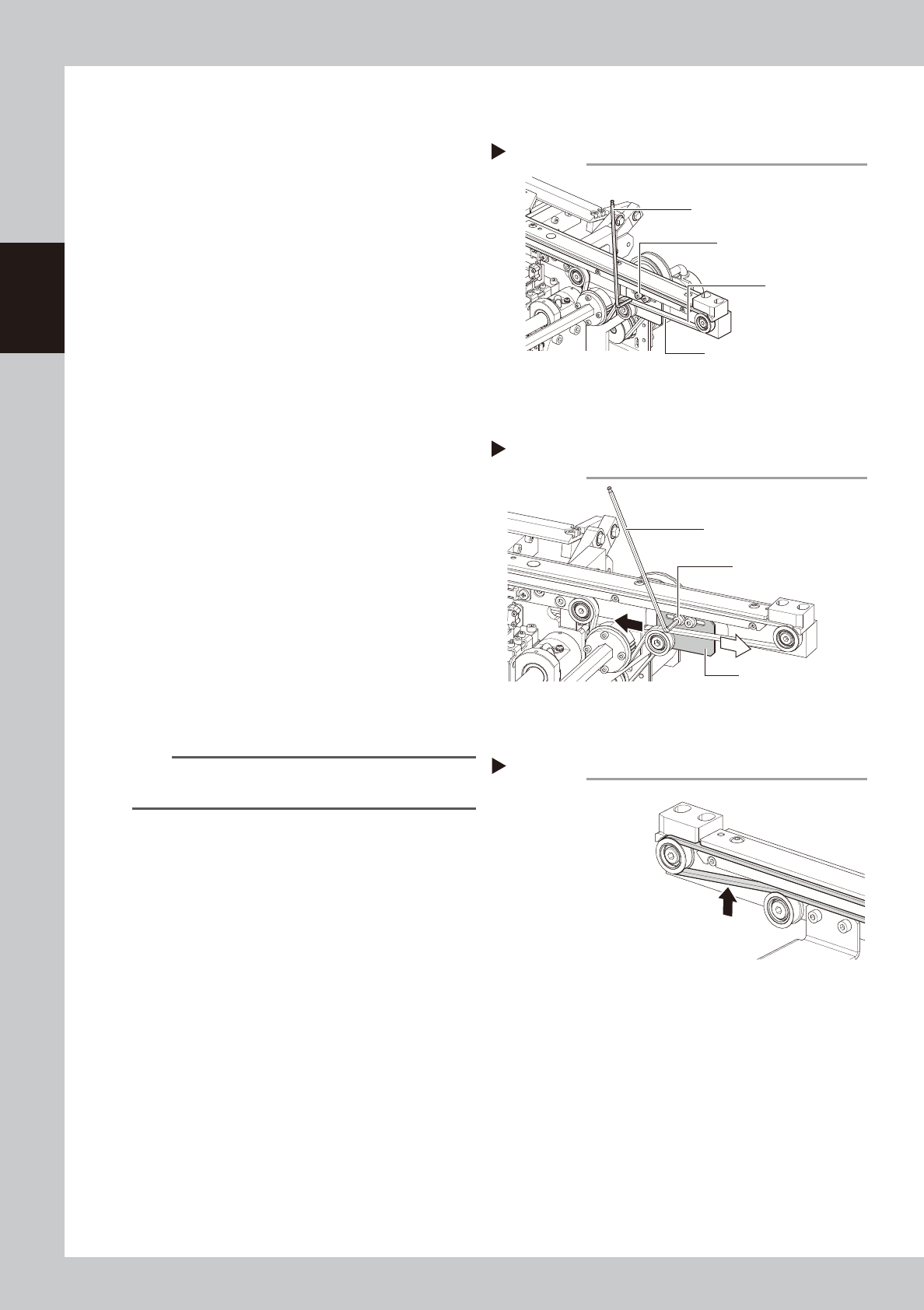 2-10 2 Inspection and maintenance 2.3.2 Belt T ype B 1 Pr epare for tension adjustment. See Step 1 to 3 in "2.3.1 Belt Type A" to detach mask guide plate. 2 L oosen the belt tension. 1. Mark the current positio…