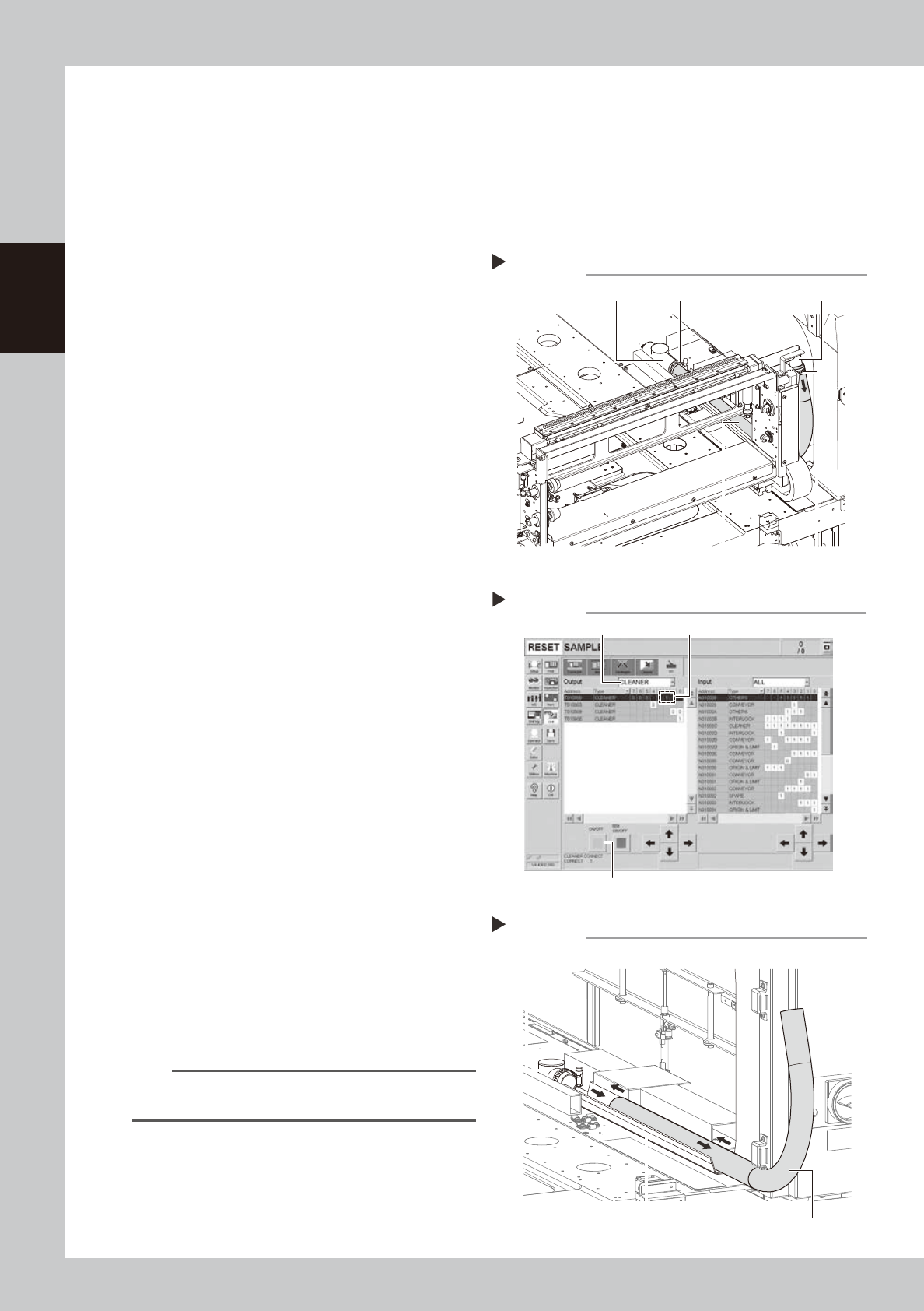 2-19 2 Inspection and maintenance 7 C onnect the blower hose on the base side to the vacuum pipe tempor arily . Connect the blower hose to the vacuum pipe temporarily. 53216-N1-00 8 C onnect the blower hose on the cleani…