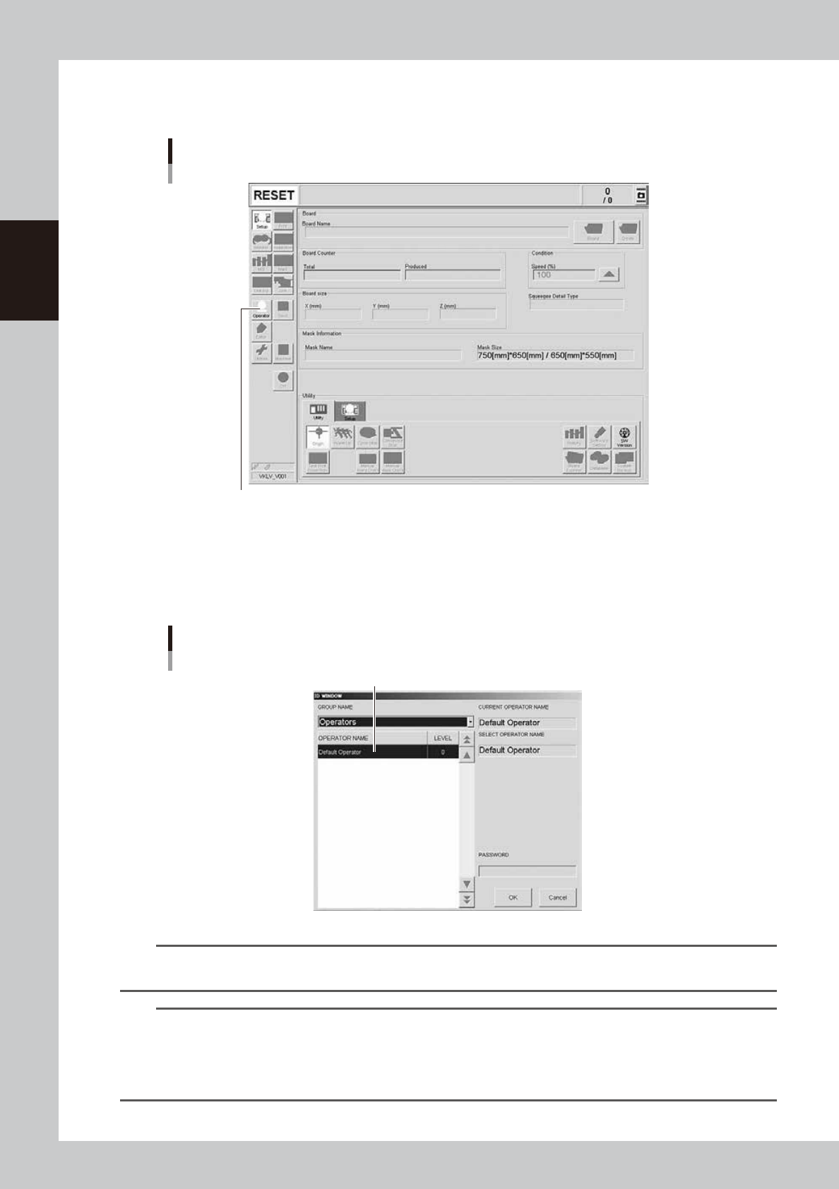 changed as needed. Operators and operation items can also be added and specified by setting the password and