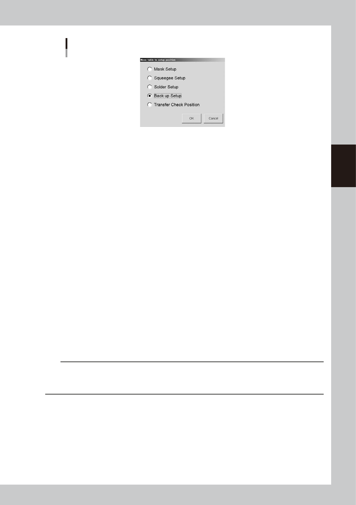 “Move table to setup position” screen