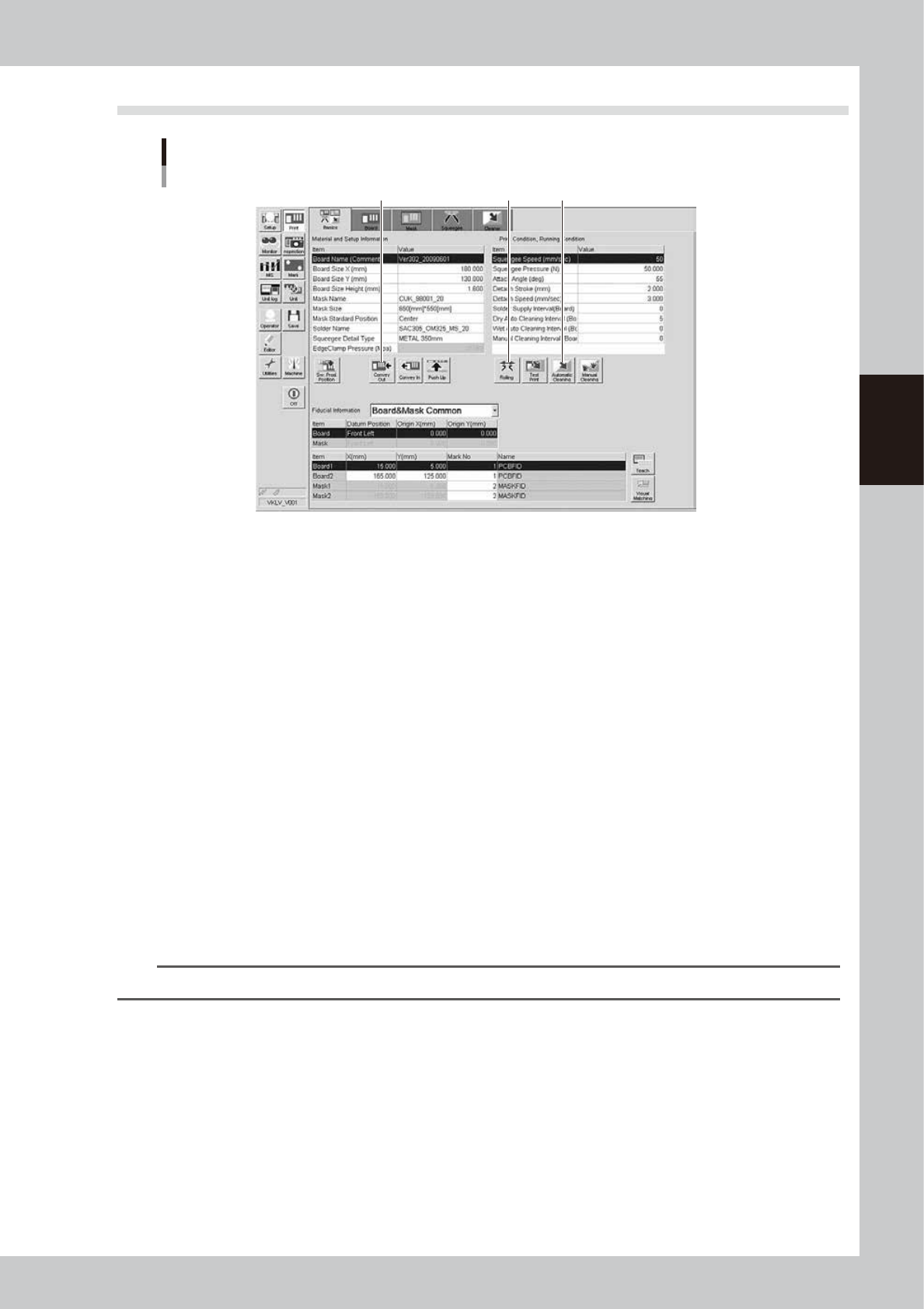 3. Enter mark Nos. used to recognize the correct fiducial mark positions on the board and mask.