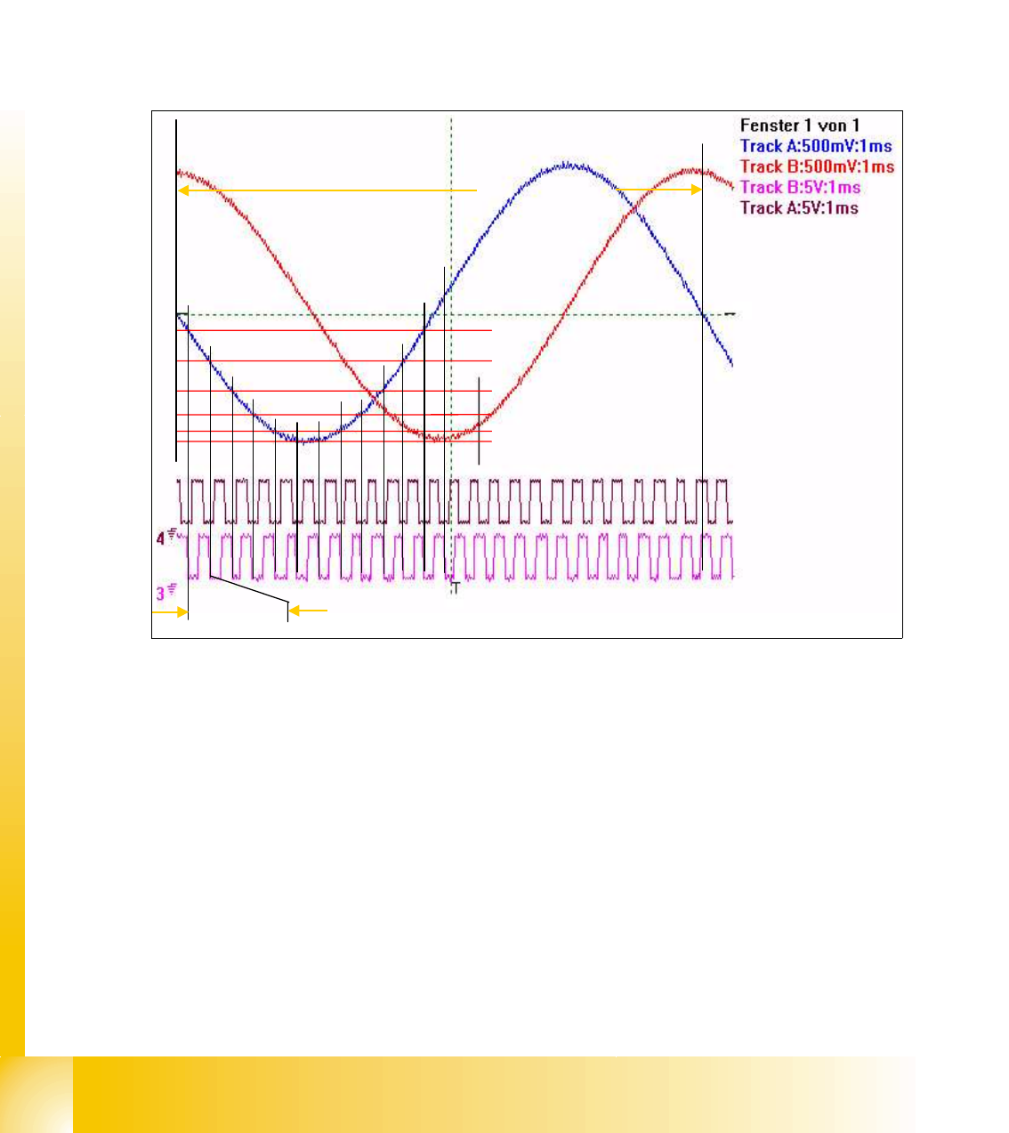 (3) Digitales Spur A-signal am Teststecker (4) Digitales Spur B-signal am Teststecker