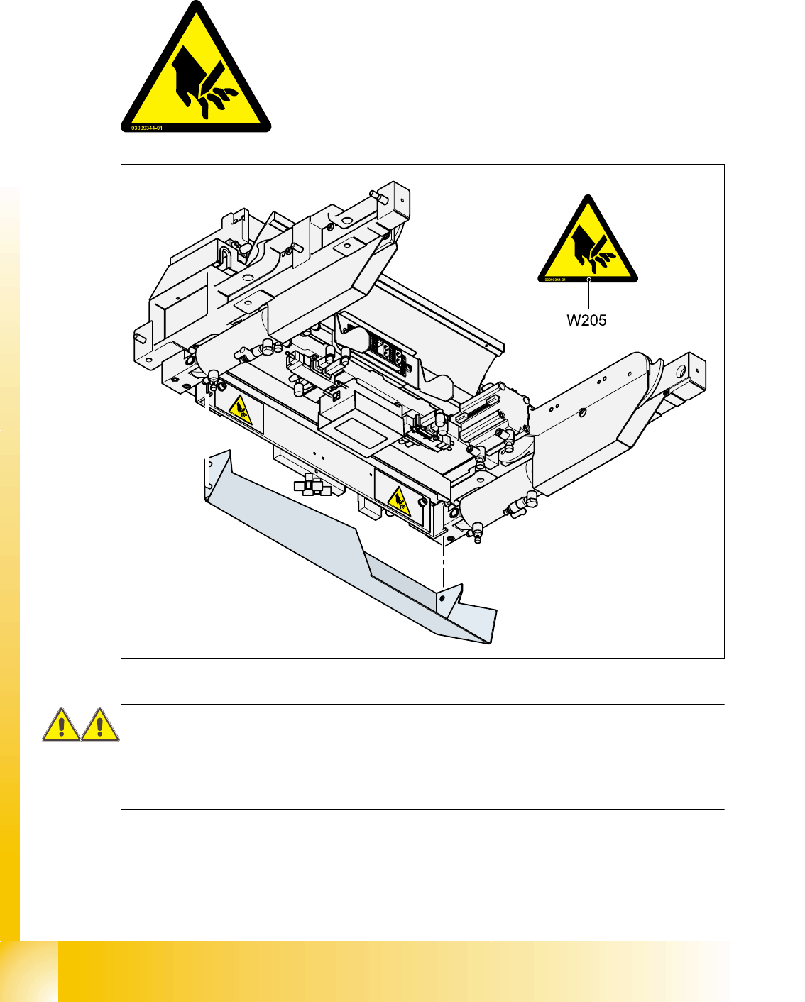 Abb. 1.2 - 2 Warnschild W205 an der Unterseite des Gurtschneidgeräts