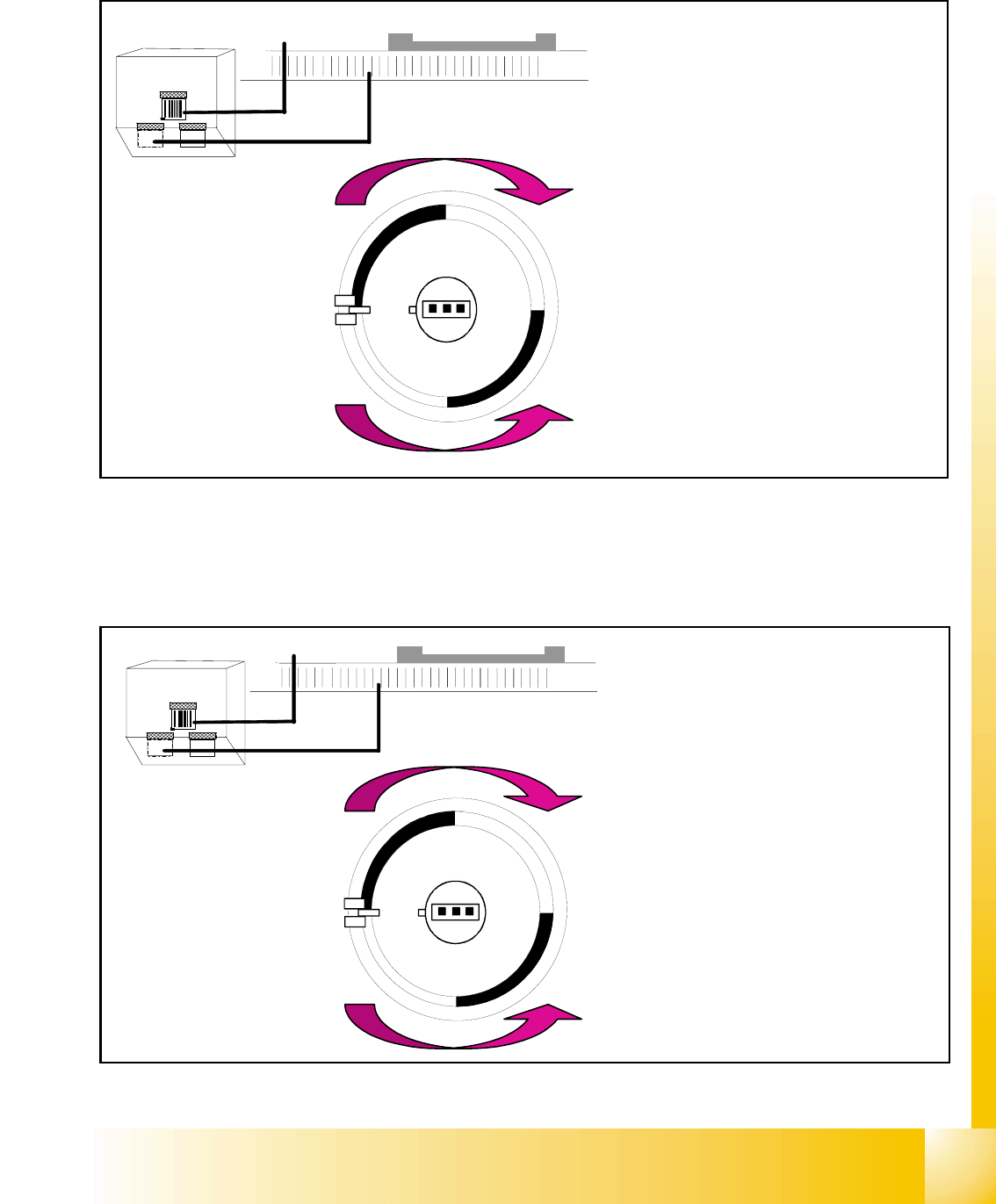 – Von der Ausgangsposition dreht der Schrittmotor 90 ° zum Einschwenken.