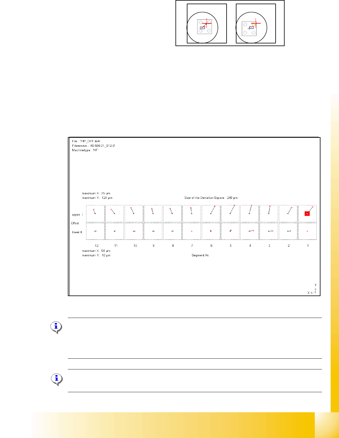 Die Abweichung zur Soll-Bestückposition wird als Segment-Offset unten (II) eingetragen.