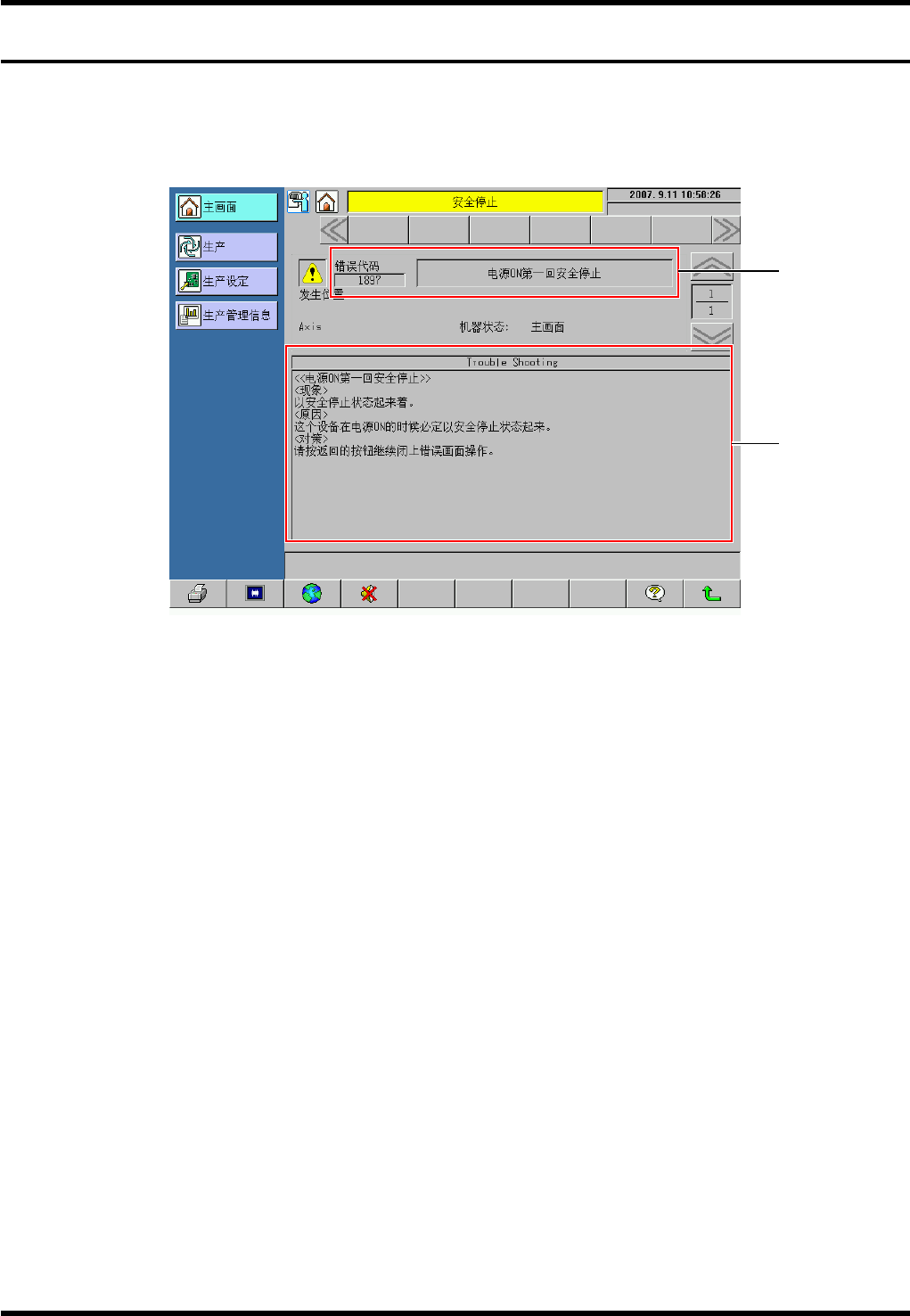 2. Trouble Shooting (排除故障) 显示区域