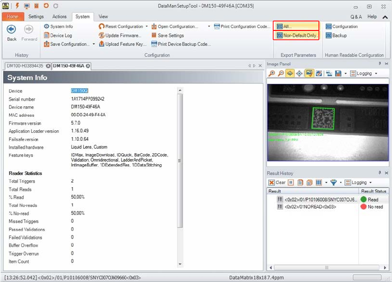 Über "All…" bzw. "Non-Default Only…" können Sie Konfigurationswerte in eine Excel-Datei (*.csv-